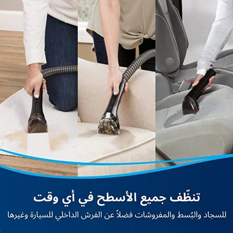 بيسيل SpotClean Pro 1558E هو واحد من أقوى أجهزة تنظيف البقع المحمولة التي طورتها BISSELL، حيث يجمع بين قوة المحرك العالية (750 واط) وتقنية الشفط العميق لإزالة أصعب البقع والانسكابات من السجاد والمفروشات والأرائك ومقاعد السيارات بسهولة وفعالية.