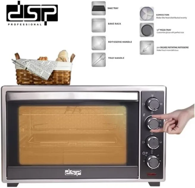 ابدئي بتحضير المخبوزات، الخبز، المشاوي، والحلويات بسهولة مع فرن DSP سعة 48 لتر الذي يُقدّم أداءً قويًّا بقدرة 2000 واط ويحتوي على هيكل من الستانلس ستيل ومفتاح حرارة حتى 250 °م تقريبًا.