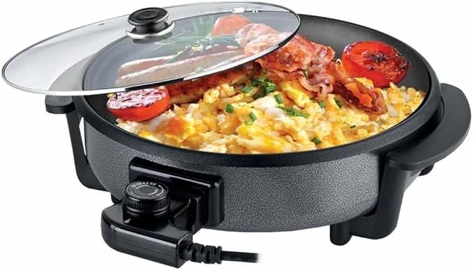 هذا الجهاز ليس مجرد مقلاة، بل هو "مطبخ متنقل". بفضل حجمه الكبير وعمقه المناسب، يمكنك استخدامه لطبخ كل شيء تقريباً (من قلي البيض، إلى عمل البيتزا الكبيرة، وحتى طبخ الكبسة والمندي واليخنات).