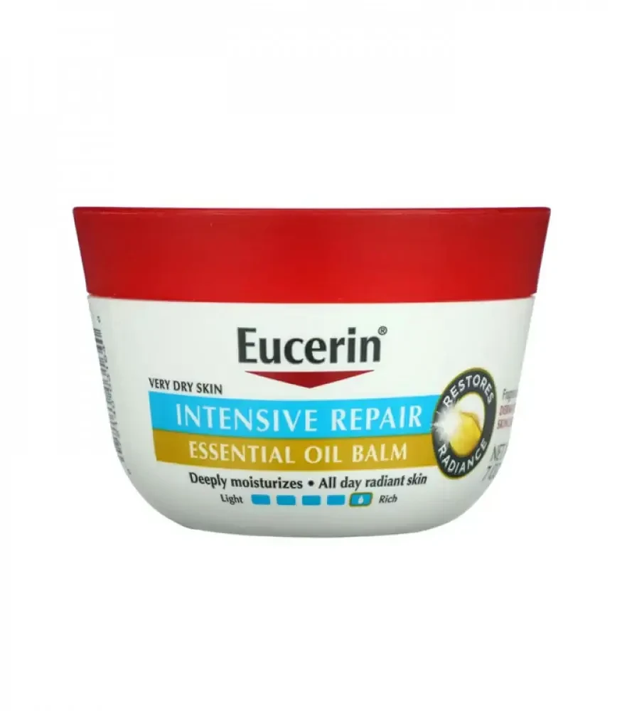 بلسم Eucerin Intensive Repair Essential Oil Balm هو تركيبة ألمانية فاخرة مصممة خصيصًا لترميم البشرة شديدة الجفاف والمتشققة.