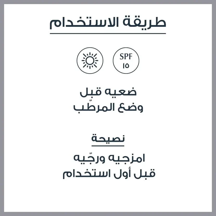استخدميه صباحًا على بشرة نظيفة وجافة قبل الترطيب.
