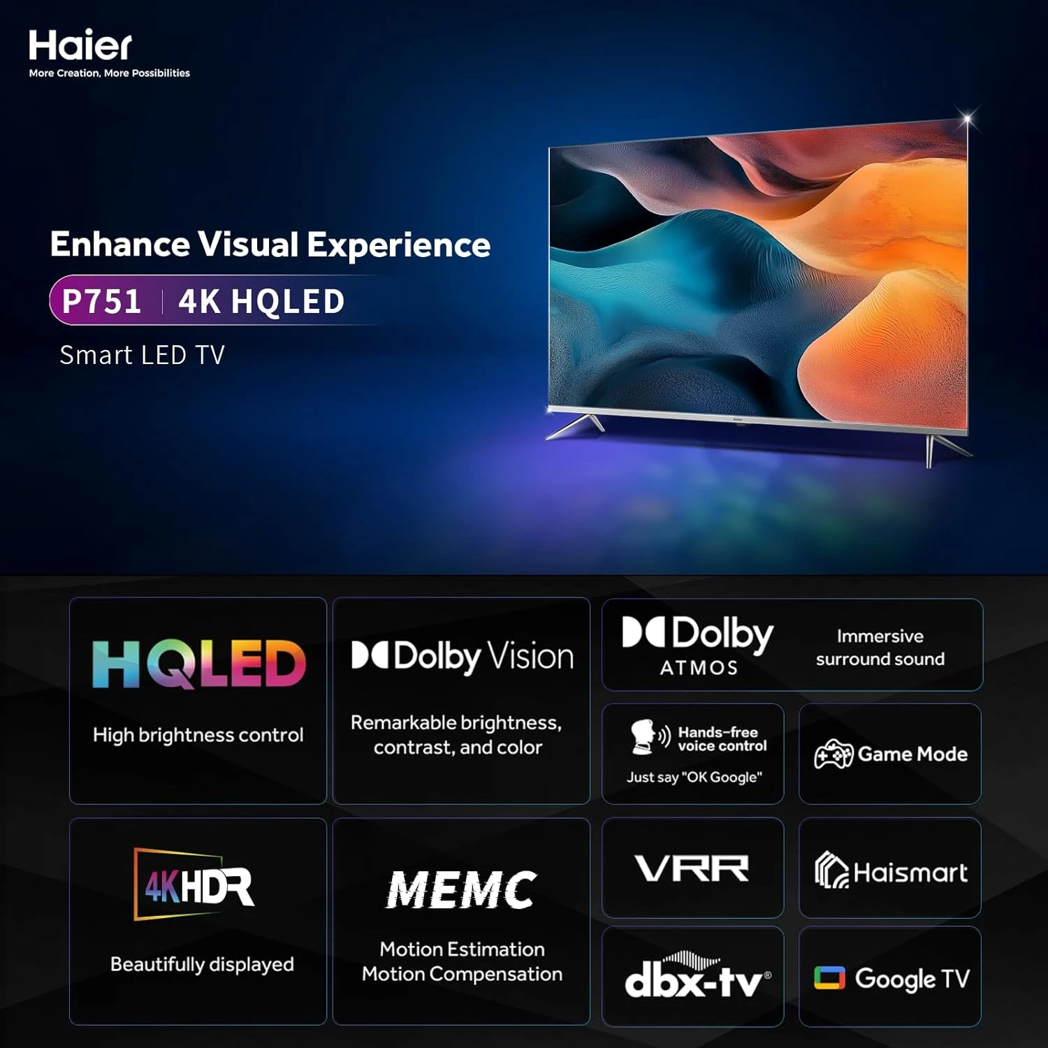 تقنية HQLED (Quantum Dot): استمتع بتدرجات لونية أوسع وأكثر دقة من شاشات LED العادية. اللون الأحمر أكثر توهجاً والأسود أكثر عمقاً.