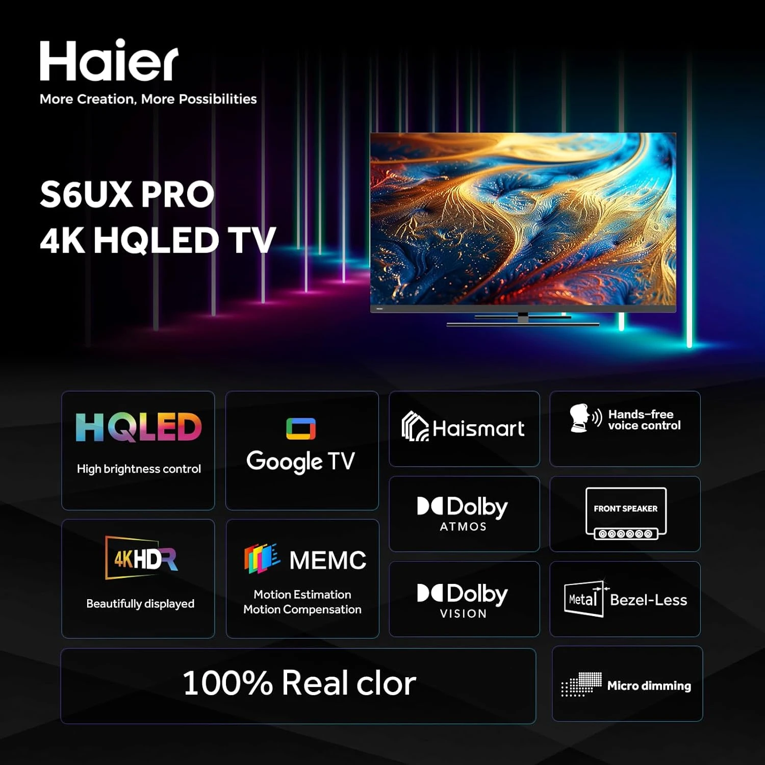 Haier 55" 4K QLED Smart Google TV | 120Hz MEMC & VRR | Full Array Local Dimming | Premium Sound - H55S900UX