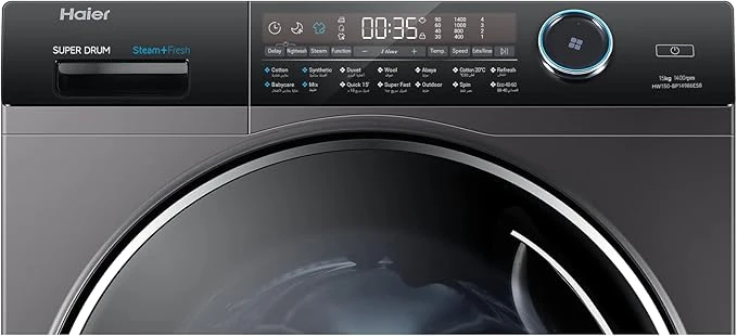تقدم غسالة هاير HWD150-BP14986ES8 بسعة ضخمة تصل إلى 15 كجم تجربة غسيل احترافية مصممة للعائلات الكبيرة أو الاستخدام المكثف.