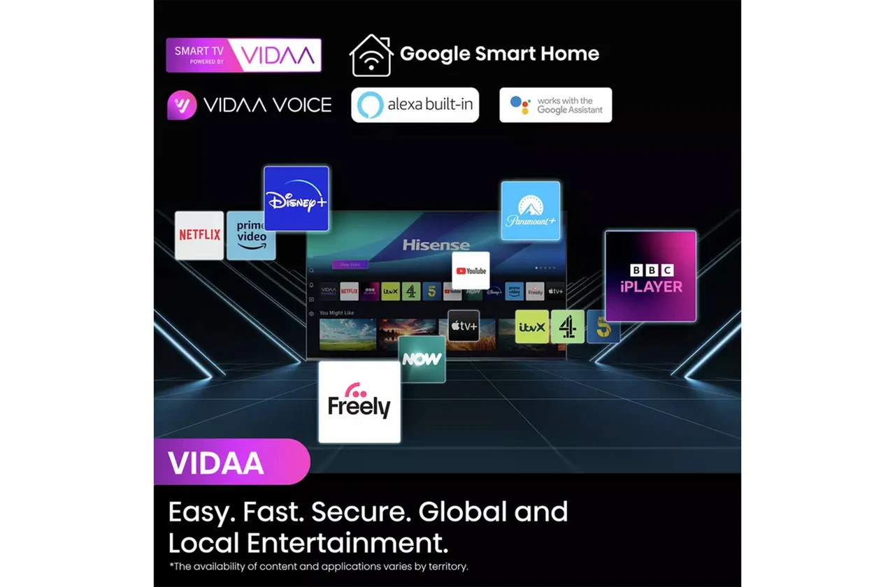 نظام Google TV الذكي: يوفر وصولاً سلساً لآلاف التطبيقات والمحتوى عبر متجر Google Play، مع إمكانية استخدام مساعد Google للتحكم الصوتي.