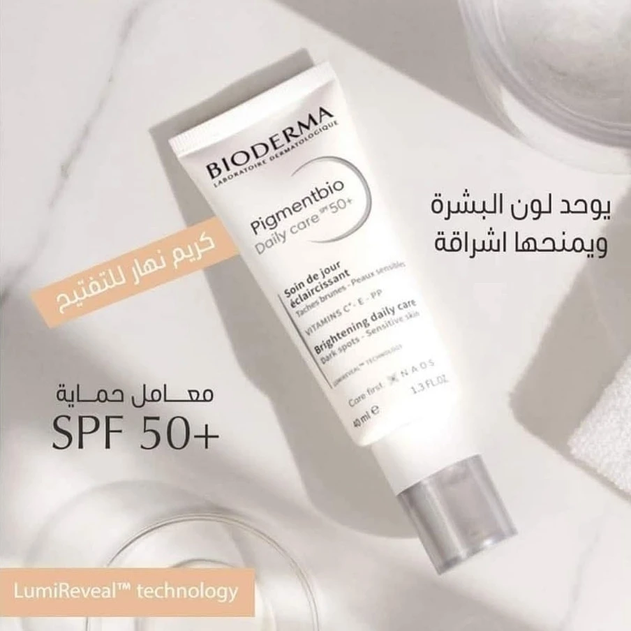 كريم بيوديرما بيغمنت بيو ديلي كير SPF 50+ هو الحل المثالي لتفتيح وتوحيد لون البشرة مع حماية فعّالة من أشعة الشمس.