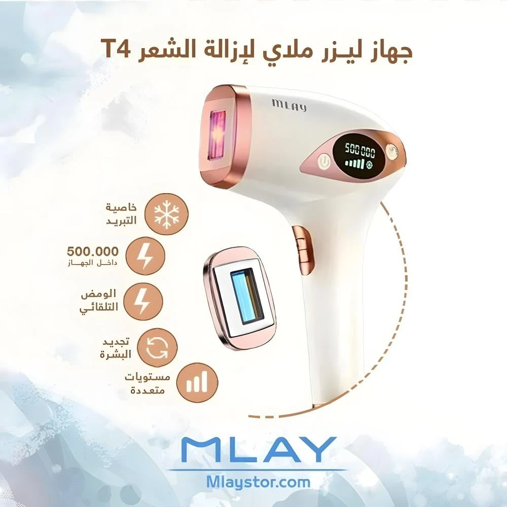 ودّعي جلسات العيادات باهظة الثمن مع جهاز ليزر ملاي T4 الأحدث بتقنية النبض الضوئي المكثّف (IPL) الذي يزيل الشعر من الجذور بفعالية وأمان وبدون ألم.