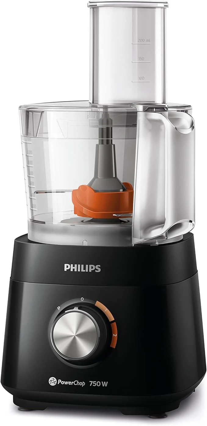 محرك قوي (750 واط): قوة ممتازة جداً بالنسبة لحجم الجهاز. هذا المحرك يمتلك العزم الكافي لفرم اللحوم القاسية، بشر الخضروات الصلبة (مثل الجزر)، وحتى عجن العجائن الثقيلة (مثل عجينة البيتزا أو الخبز) بسهولة.