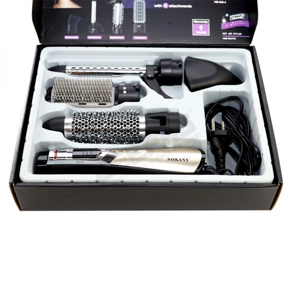 جهاز Sokany HB-835-4 يمنحك حرية الاختيار لتجفيف الشعر وتصفيفه أو تمليسه أو منح حجم — بفضل تصميم «4 في 1» الذي يتضمن عدة رؤوس/ملحقات لتناسب عدة استخدامات.