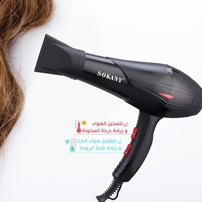 مجفف الشعر سوكاني HS-3890 بقدرة 2300 واط يمنحك تجفيفًا سريعًا وفعّالاً، حتى للشعر الطويل أو الكثيف.
