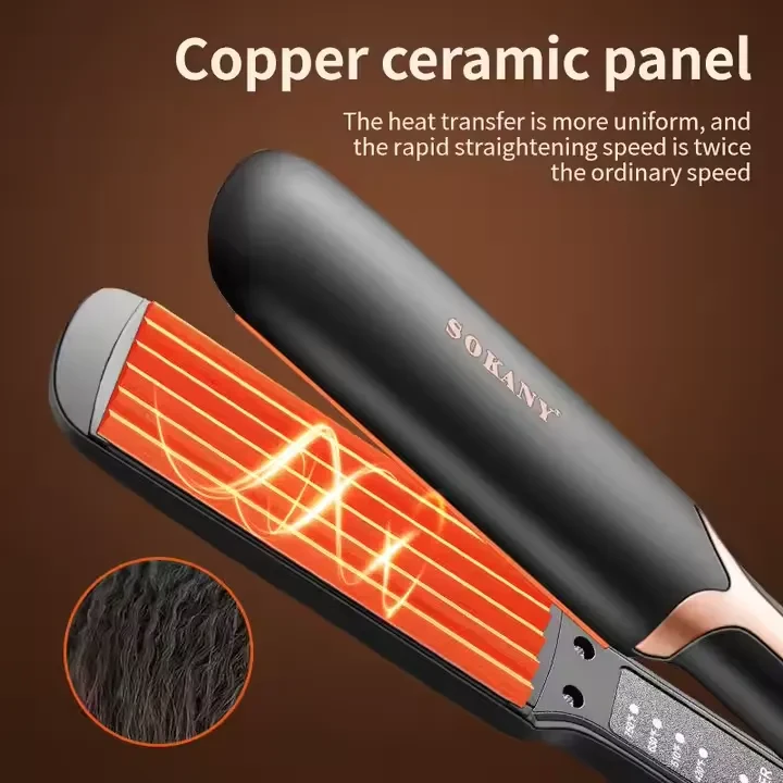 المملّس سوكاني SK-1906 يمنحكِ شعرًا أملسًا وناعمًا بسرعة وسهولة في المنزل أو قبل الخروج. الألواح السيراميكية تضمن توزيع حرارة متساو على الشعر مما يقلل احتمال التلف أو التقصف.