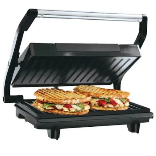 يمكن استخدام الجهاز كصانعة ساندويتش أو كشواية خفيفة للحوم، الخضروات أو حتى السمك — التصميم يوفر العديد من الاستخدامات بمنتج واحد.