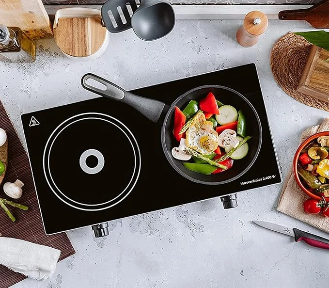 شول سوكاني SK-224 توفر لك طهي سريع وفعّال مهما كانت مساحة مطبخك محدودة — بفضل وجود عينين تسخين مستقلتين يمكنك طهي وجبتين في نفس الوقت بضبط حرارة مختلف لكل عين حسب الحاجة. الجهاز يعمل بقدرة 2400 واط (1200 واط لكل عين تقريبًا) — ما يضمن تسخين سريع وأداء قوي.