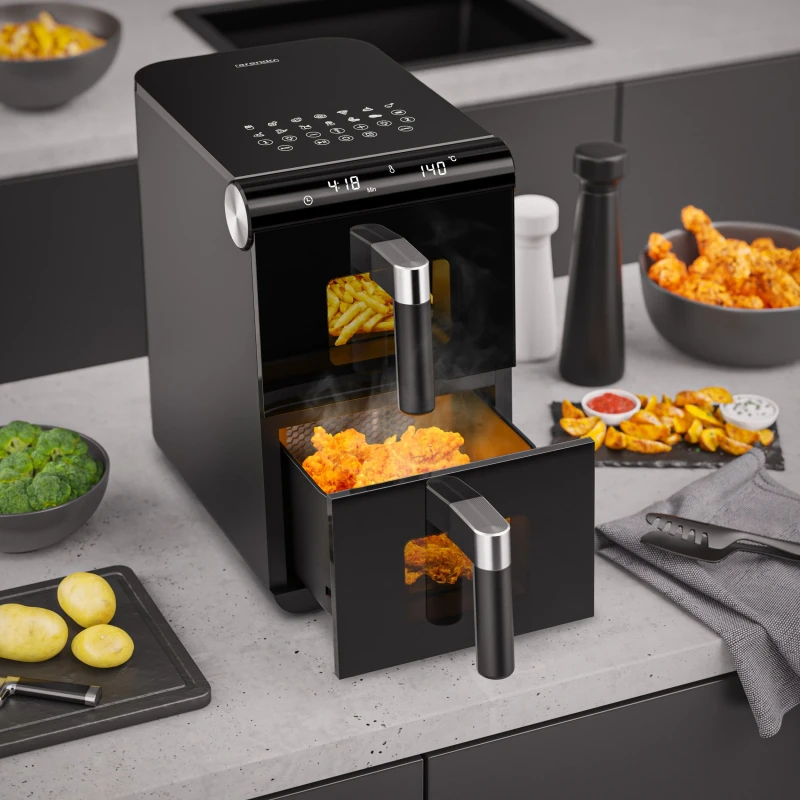 | الاستخدام | قلاية هوائية مزدوجة – مثالية لعدة أطباق أو أفراد |