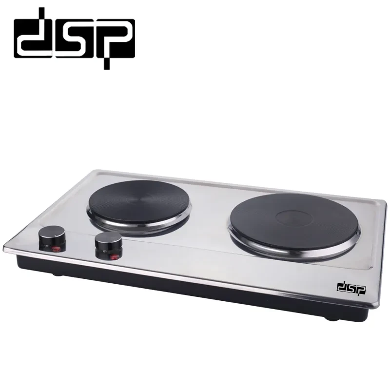 استعد لطهي سريع ومرن مع اللوح الكهربائي DSP KD4047 الذي يحتوي على عينتين تسخين منفصلتين: الأولى بقطر ≈ 155 مم وتقع تحتها قدرة ~1000 واط، والثانية بقطر ≈ 185 مم وقدرة ~1500 واط.