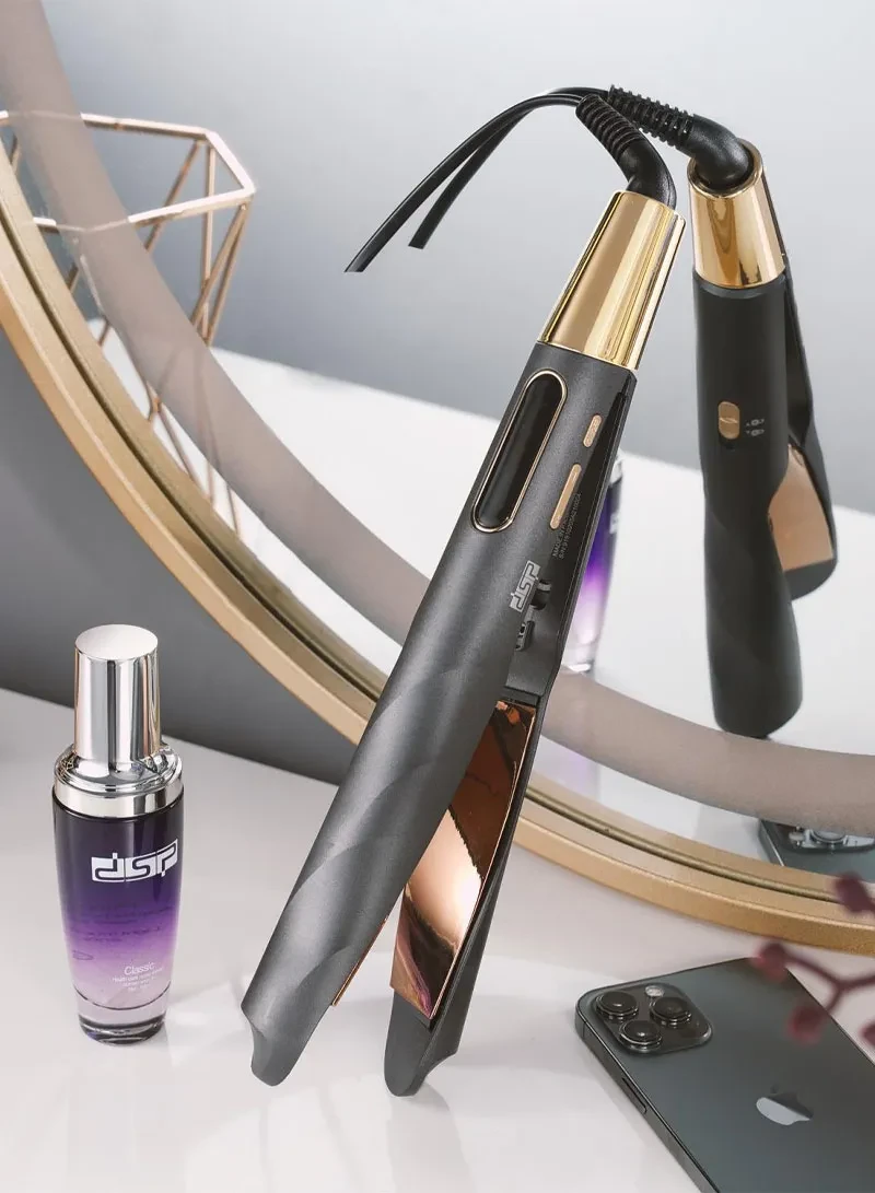 استمتعي بتصفيف احترافي في المنزل مع مِمّلس الشعر DSP 10205A الذي يجمع بين وظيفتي التمليس والتجعيد في جهاز واحد. تم تصميمه بألواح سيراميكية مطلية لتوزيع حرارة متساوي يقلّل تلف الشعر ويحافظ على لمعانه.