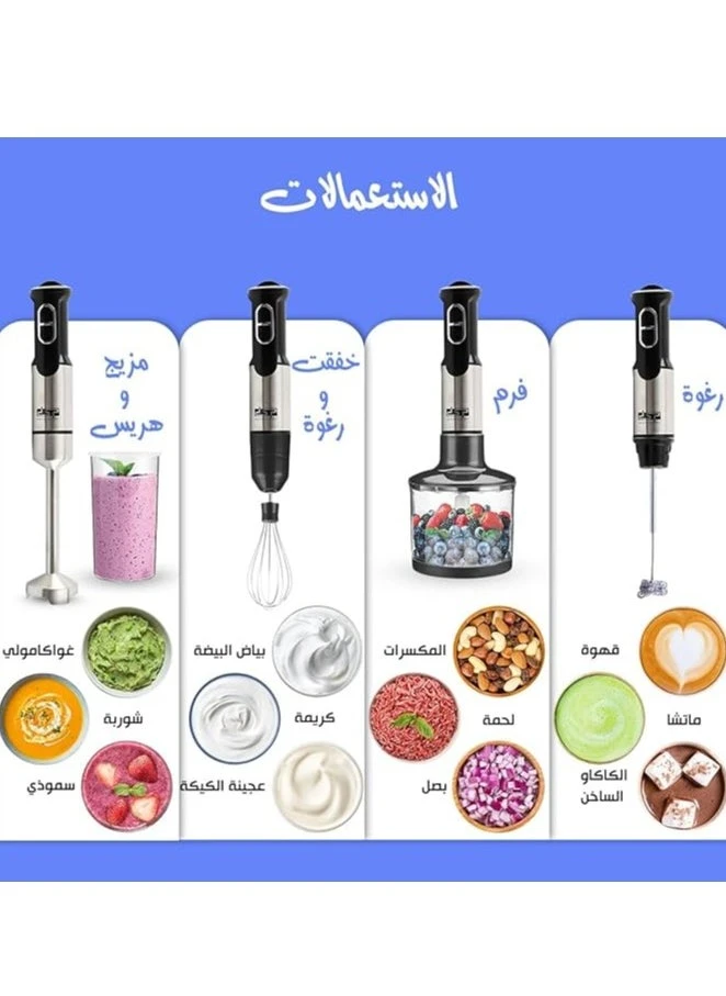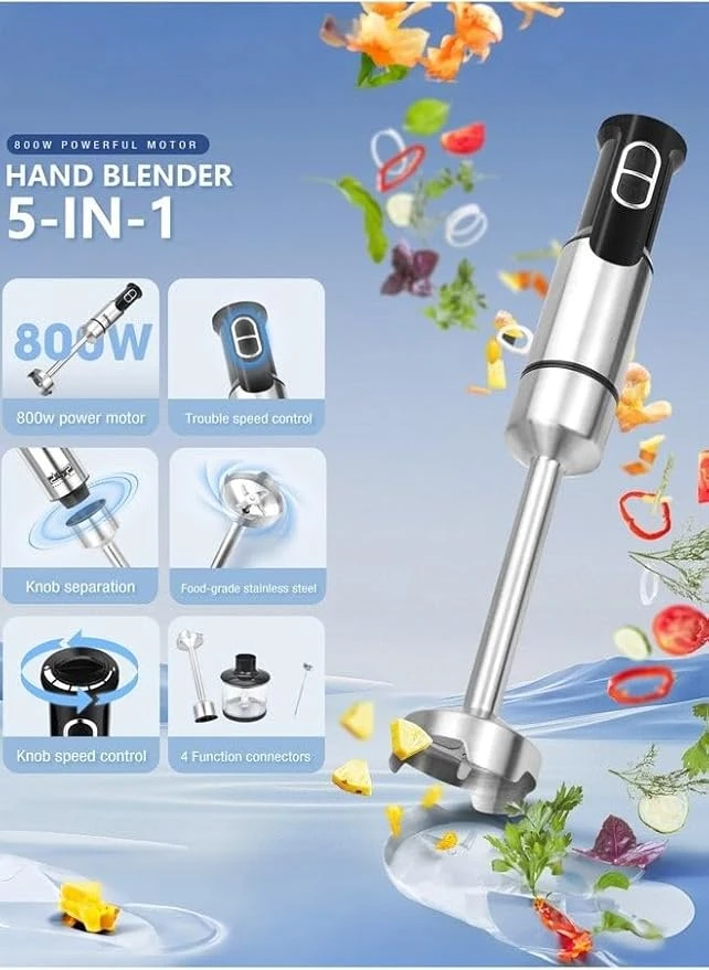 بقدرة 800 واط ومحرك نحاسي كامل، يوفر أداءً قوياً وسلساً في التقطيع، الخفق، الطحن، والعصر.