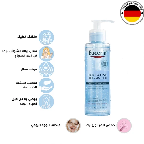 يوسرين جل تنظيف الوجه بحمض الهيالورونيك هو غسول لطيف مصمم لإزالة الأوساخ والزيوت الزائدة دون الإضرار بحاجز الترطيب الطبيعي للبشرة.