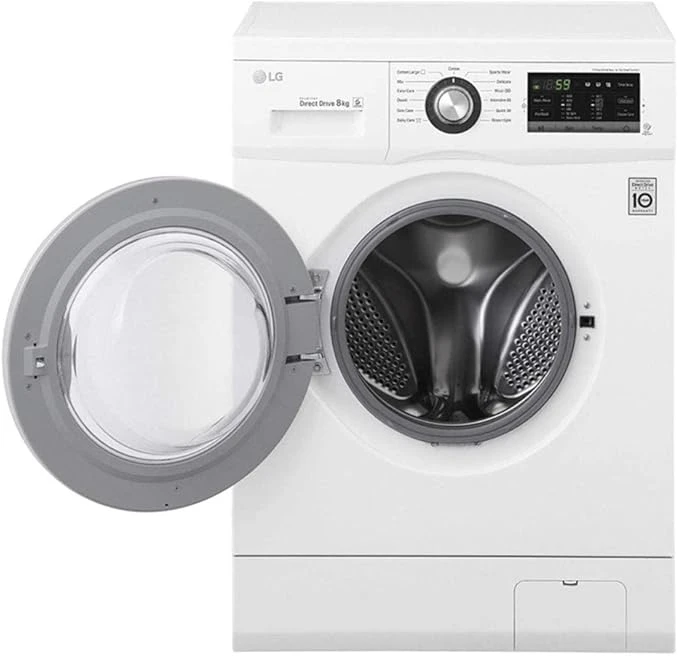 كما أن محرك Direct Drive متصل مباشرة بالحوض، مما يقلل الأعطال ويطيل عمر الغسالة، وتدعمه إل جي بضمان لمدة سنة على الجهاز، مما يمنحك راحة بال وثقة في الأداء.