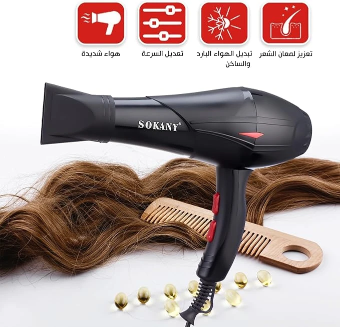 مجفف الشعر سوكاني HS-3890 بقدرة 2300 واط يمنحك تجفيفًا سريعًا وفعّالاً، حتى للشعر الطويل أو الكثيف.